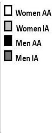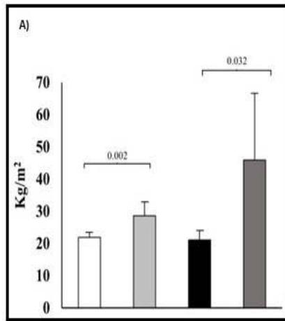Furthermore, in table 3 was observed that, regardless of sex and as expected, all anthropometric parameters (weight, waist circumference, hip circumference, among others) showed significant differences between subjects with inadequate adiposity (IA) and adequate adiposity (AA).