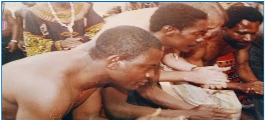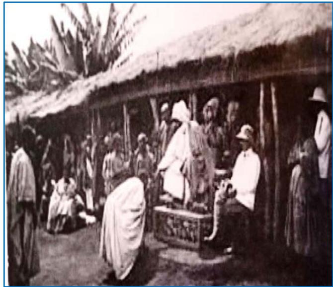 To begin with, the name 'Bafut' was first mentioned in any historical document in modern times by Dr. Eugen Zintgraff in one of his works which recorded his passage through Bafut in 1889. Here, Zintgraff's view about the Fon of Bafut on his first encounter with Abumbi I is highlighted. Zintgraff described the Fon of Bafut, Abumbi I, as an African despot such as he had not seen before or was he ever to see again (Zintgraff, 1895:16). In fact the Bafut worshiped their fon as a demi-god and even whites who came to Bafut joined the people to perform traditional rites that honoured the Fon(see fig. 7).