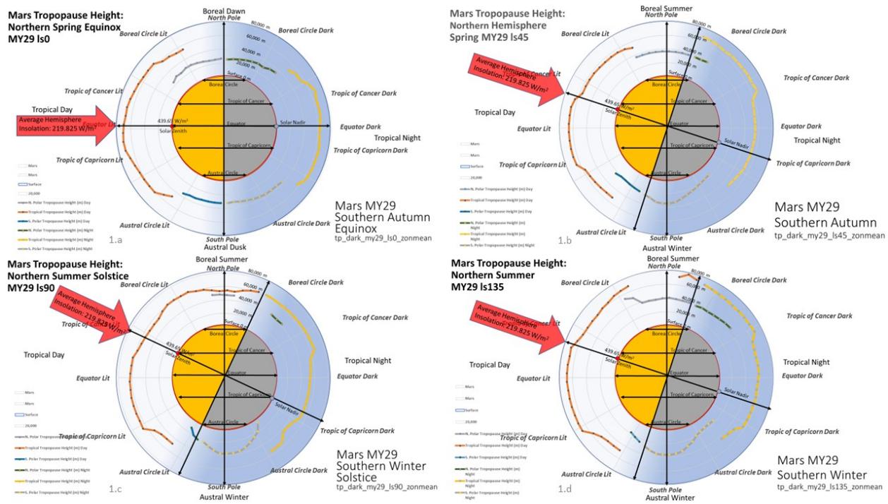 The authors thank Dr Nigel G. Heavens for his kind assistance in providing the source panel data of the Zonal average temperature nightside and dayside retrievals for MY29 that informs this study [39]. These data comprise the first Martian year and a half of observations by the Mars Climate Sounder aboard the Mars Reconnaissance Orbiter.
