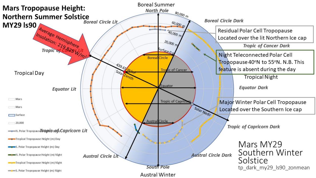 Figure 8: Mars Tropopause Height: Northern Summer Solstice MY29 ls90.