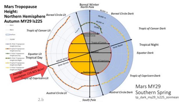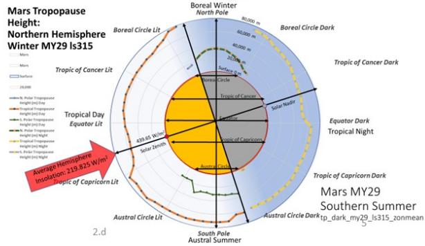 Figure 2: Mars Global Tropopause Height - Southern Hemisphere Summer