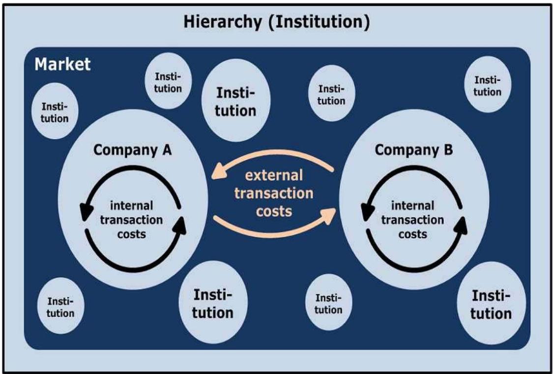 Rindfleisch (2020), he saw transactions as the movement of commodities or services between different systems, and contended that when the costs associated with these transactions were significant, it was more suitable to handle them inside a hierarchical structure. In contrast, when transaction costs were minimal, purchasing the item or service on the market was the favored choice (Cuypers et al., 2021).