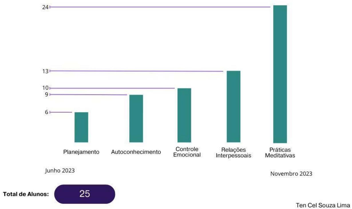 Os Resultados obtidos através do estudo de caso, apresentados no Capítulo 4, foram analisados em quatro áreas principais, como planejamento pessoal, atenção plena, inteligência emocional e relações interpessoais, indicam melhorias consistentes nas habilidades emocionais dos participantes. Destacam-se ganhos significativos na consciência do pensamento, características emocionais individuais e interpessoais, evidenciando a eficácia do desenvolvimento dessas habilidades.