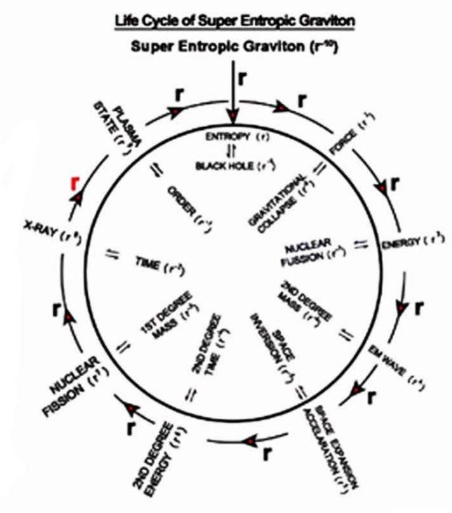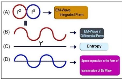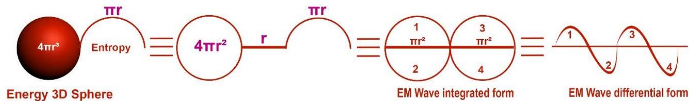 \begin{array}{l} E M - w a v e = (E n e r g y \times E n t r o p y) \\= (4 \pi r ^ {3} \times 4 \pi r) \\= (4 \pi r ^ {2} \times 4 \pi r ^ {2}) \\= (1 6 \pi^ {2} r ^ {4}) \dots \tag {10} \\\end{array}