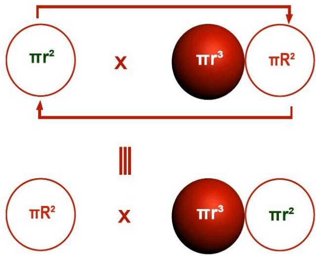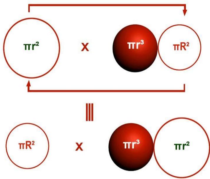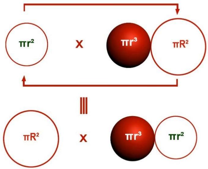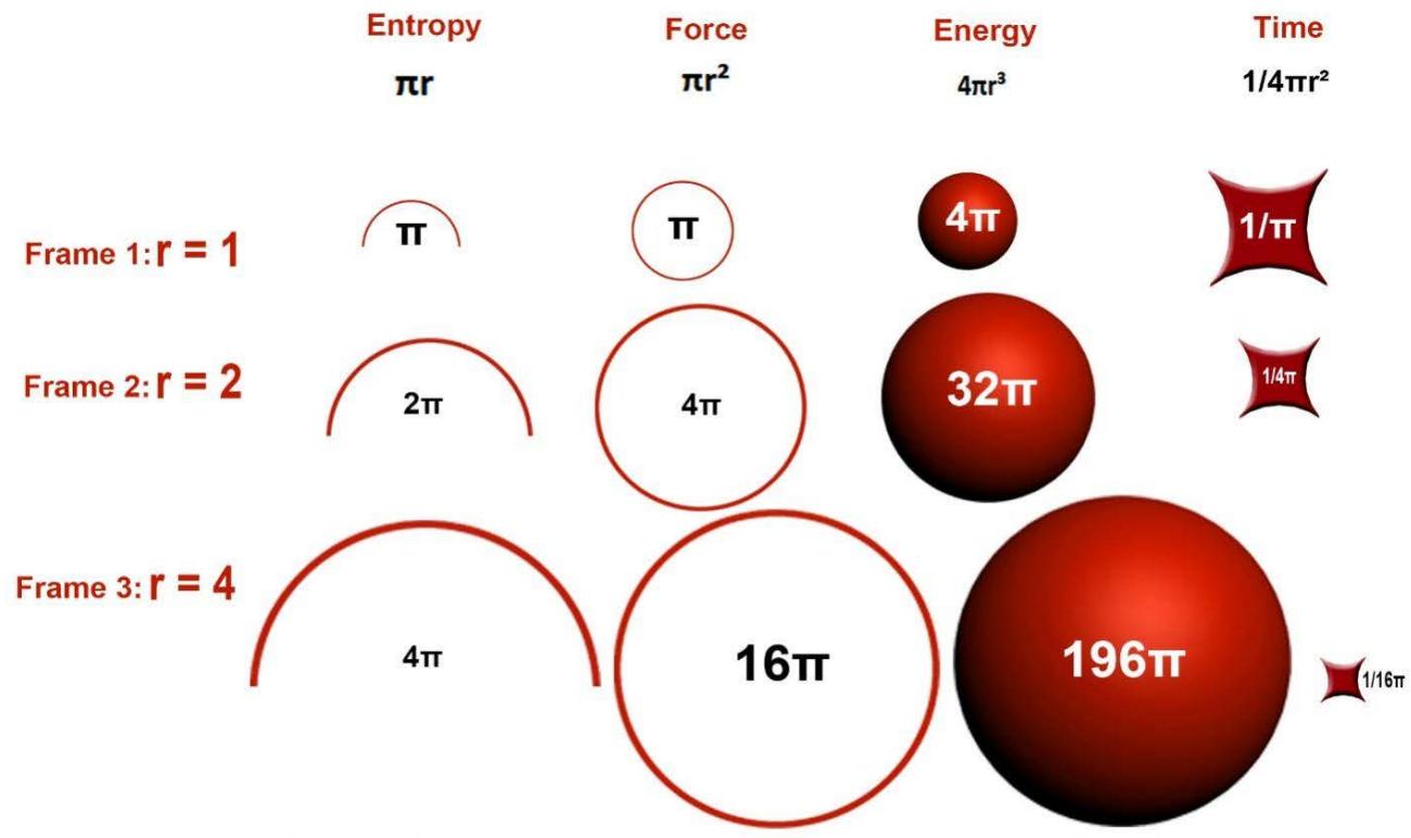 E = n \times (\text{entropy} \times \text{area}) = n \times (\text{distance} \times \text{force}) = n \times (3r) \times (4\pi r^{2}/3) = (n \times 4\pi r^{3})\tag{18}