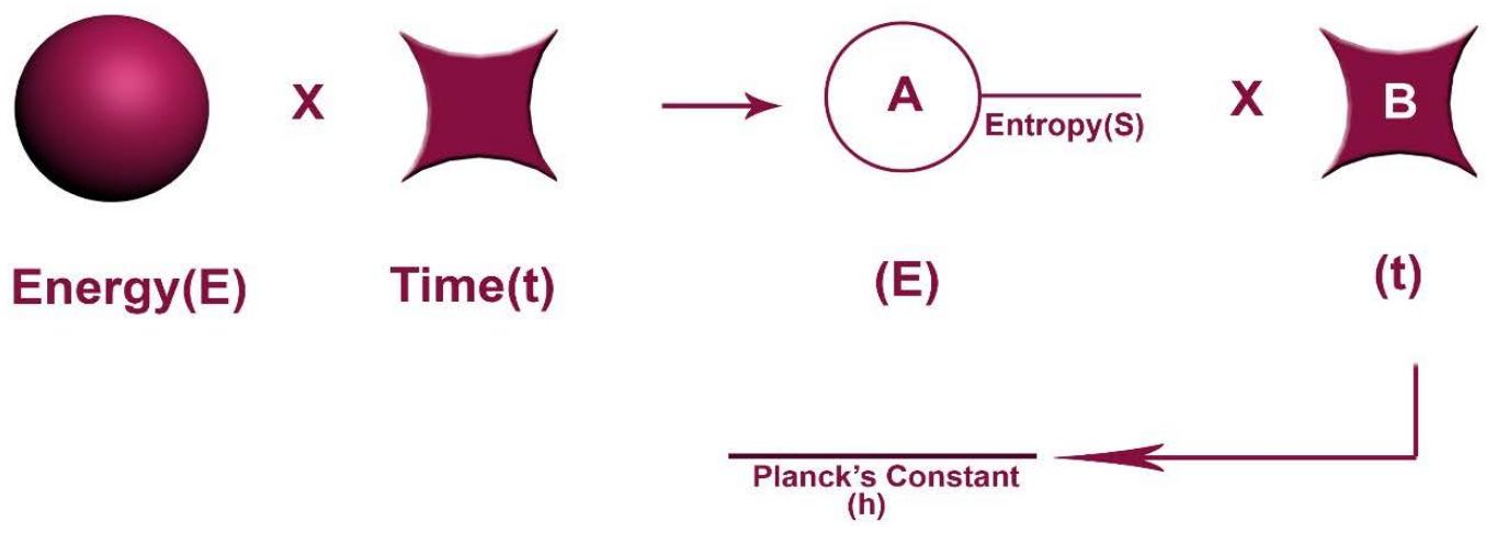 stand for uncertainty in momentum and position (respectively)) by doing some simple algebraic manipulation. However, since time is an 'abstract' variable so the product of E and t gives rise to an another abstract physical variable, h, being expressed in the unit 'energy. second'. It is the TTQG only, which for the first time in the history of physical science could topologically establish the identity of h being same to same to that of the thermodynamic parameter (or 'degree of randomness' parameter, S), entropy. This is shown diagrammatically in Figure 4 below: