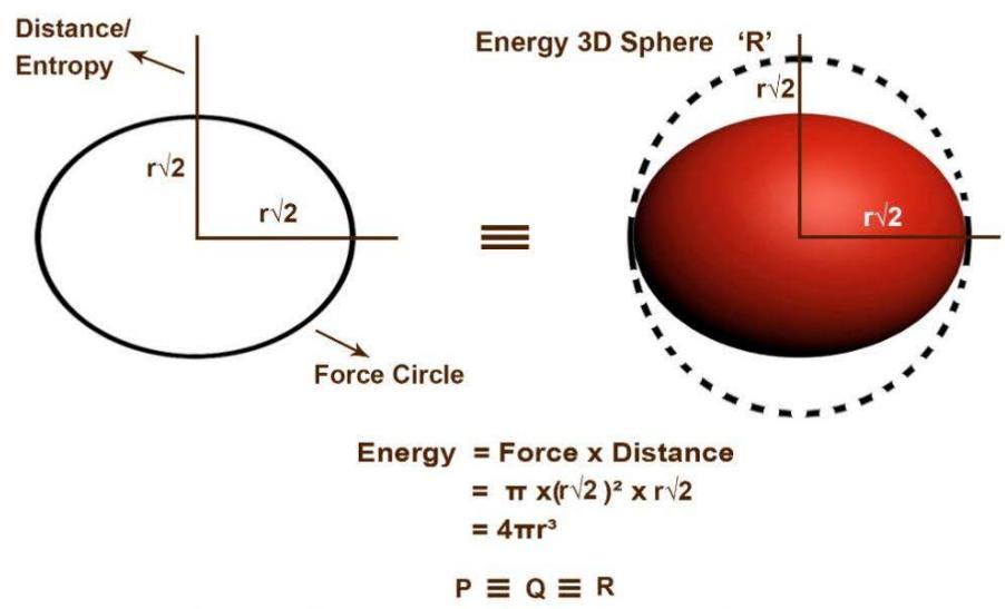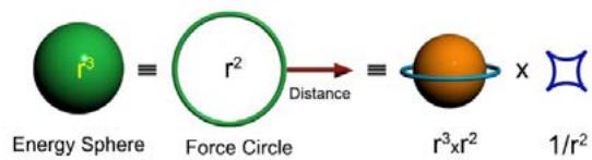 Energy = Work Done = Force x Distance Figure 5: Energy Graviton (3D SPHERE) expressed as the hybrid of 'force' and 'distance'(r)