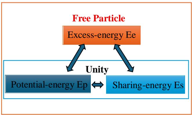 3. Matter keeps its internal potential-energy (Ep) and sharing-energy (Es) as a (part of a) unity, until being forced out of the unity by external excess-energy (Ee >= Es) as a free particle (see Figure 1: Matter).