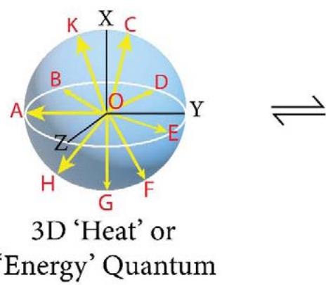 2. 'Volume' (V) and 'energy' (E) both are represented by a 'sphere quantum' (Figure 1) or a 'distorted sphere in the form of ellipsoid' [8] of the direct space and under the condition of equilibrium, the energy density of the space is constant such that, $(\mathsf{E} = 3\mathsf{V})$ or $(\mathsf{E} / \mathsf{V} = 3)$ [1-8]. For a thermodynamic process taking place under the condition of constant atmospheric pressure, the energy density would remain constant but the thermodynamic processes taking place under the non-equilibrium conditions (as for example isothermal or adiabatic expansion or compression, where the pressure of the initial states are not same to the atmosphere pressure) since the pressure varies continuously during the said changes, the principle of the constancy of energy density will not be retained).