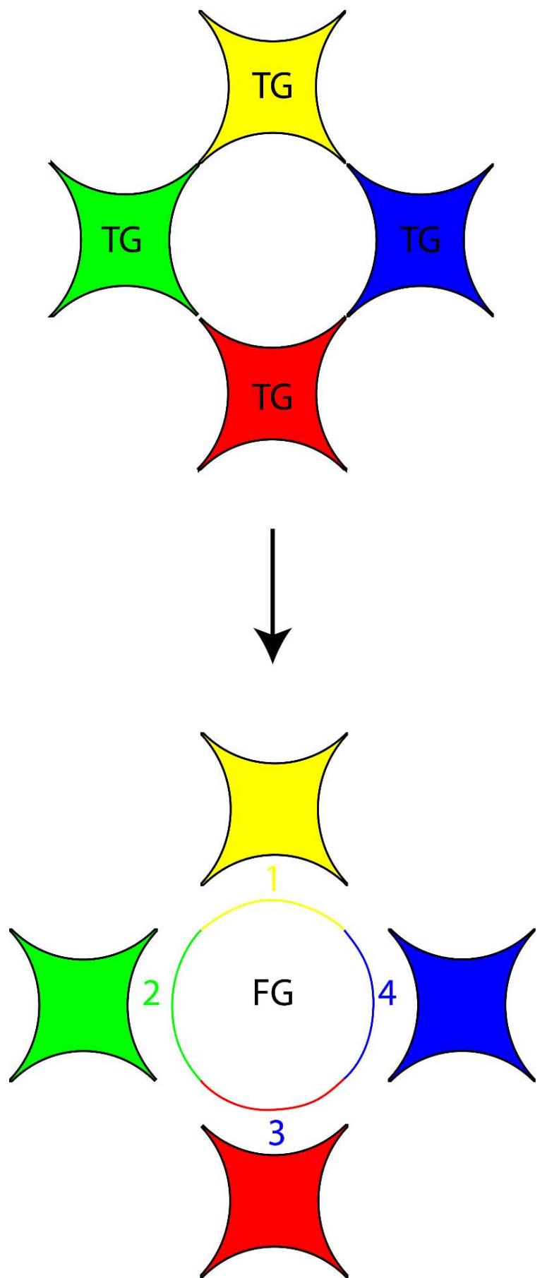 $\pi$ quantum' and 'empty $\pi$ quantum' or a 'time quantum' and a 'Force Quantum' (FG - Force quantum, TG - Time Quantum) In TSQ it has been shown that when a quantum of 'mass' (m) interacts with a quantum of volume (V), three numbers of 'empty $\pi$ quantum' are generated [1,4]. The 'empty $\pi$ quantum' are the carriers or packets of the push forward space quantums of the universe like 'entropy', 'force', 'temperature', 'volume', 'energy'.etc and the 'empty anti- $\pi$ quantum' are the carriers or packets of the 'pull back quantum's of the universe like 'order', 'time', 'mass' etc. While three numbers of 'empty $\pi$ quantum' are generated when mass interacts with volume, nine numbers of 'empty $\pi$ quantum' are evolved when the same (the mass quantum) interacts with a quantum of 'energy'. So these are mathematically expressed in TSQ as
