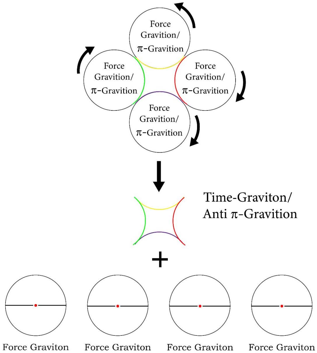 The physical significance of equation (1.2) is, when a 'quantum of temperature (T)' interacts with a 'quantum of time (t), what is formed is a 'empty space $\pi$ quantum' or a 'empty space $\pi$ graviton' as shown in Figure 7.