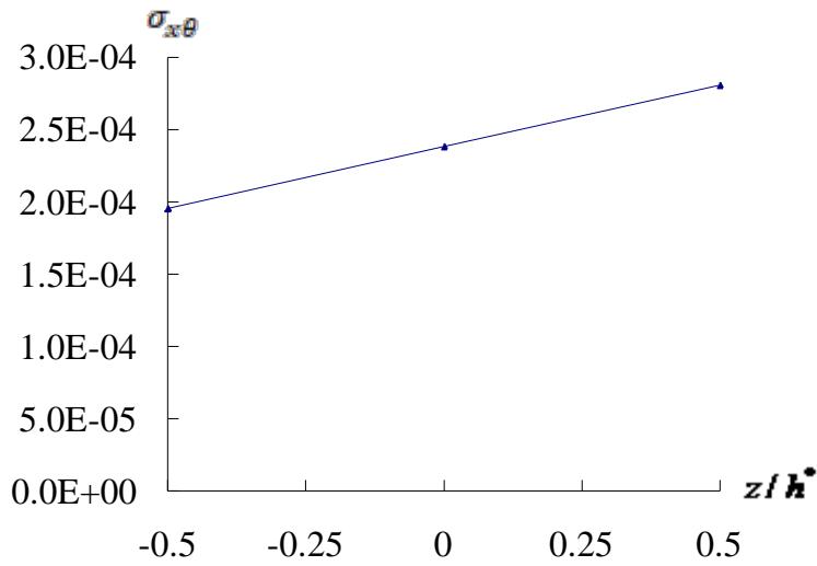 Fig. 3b: $\sigma_{x\theta}$ versus $z / h^{*}$ for $L / h^{*} = 10$