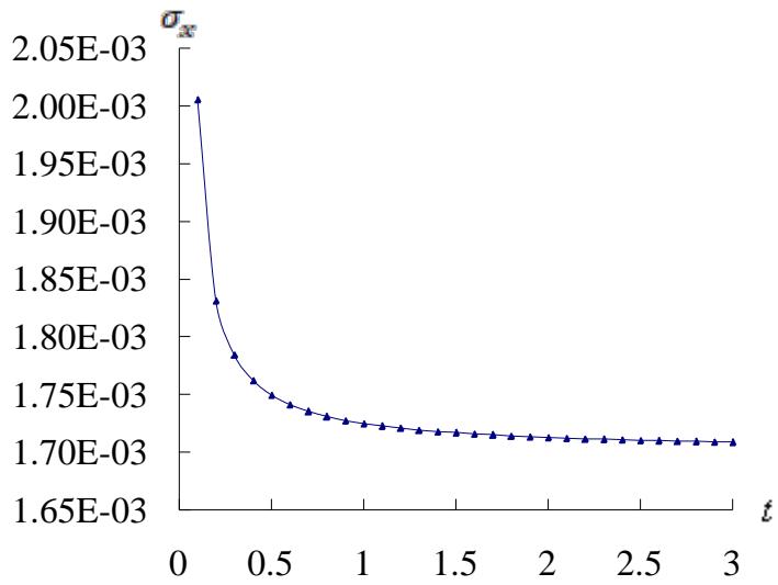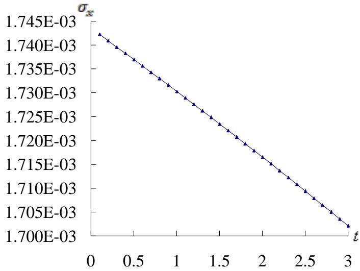 Fig. 3c: $\sigma_{x}$ versus $t$ for $L / h^{*} = 5$