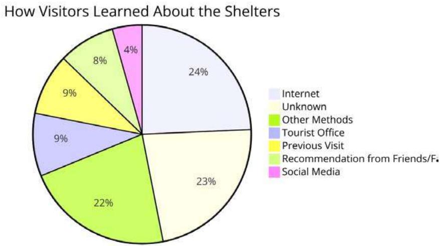Figure 12: Pie-chart diagram illustrating how visitors learned about the shelters, showing the distribution of discovery methods among visitors.