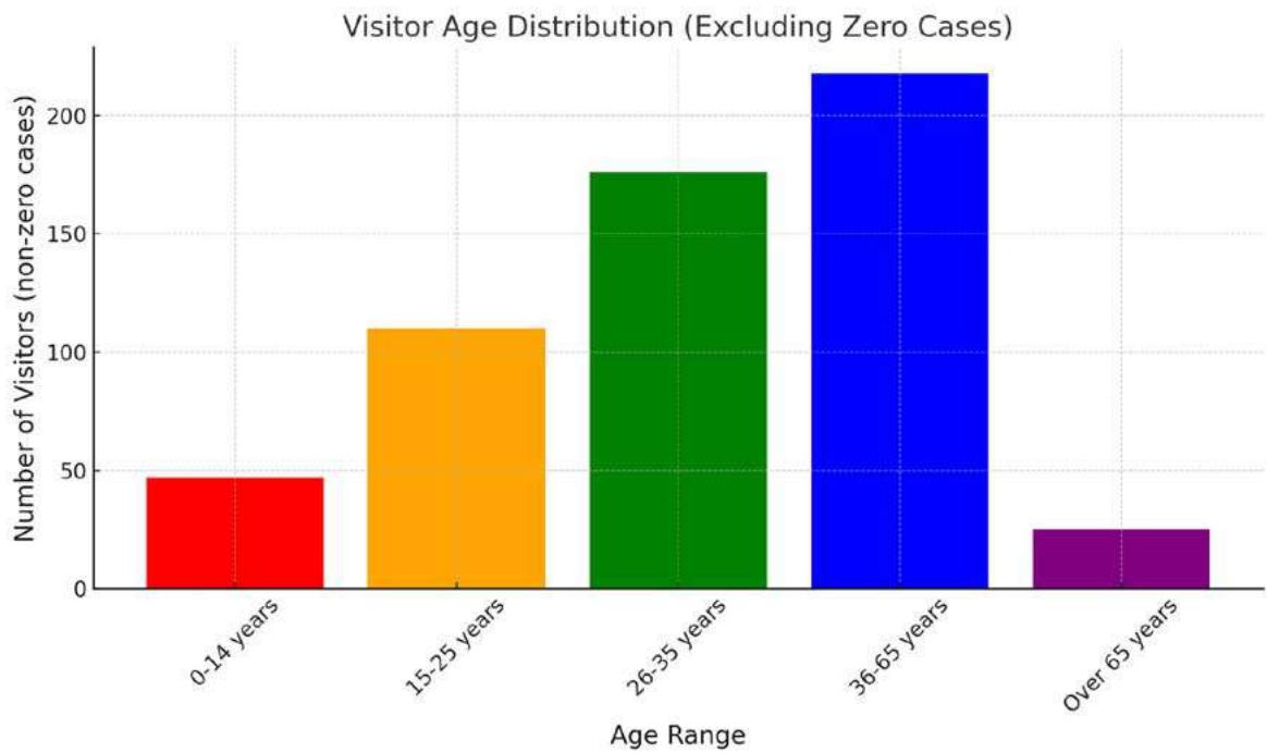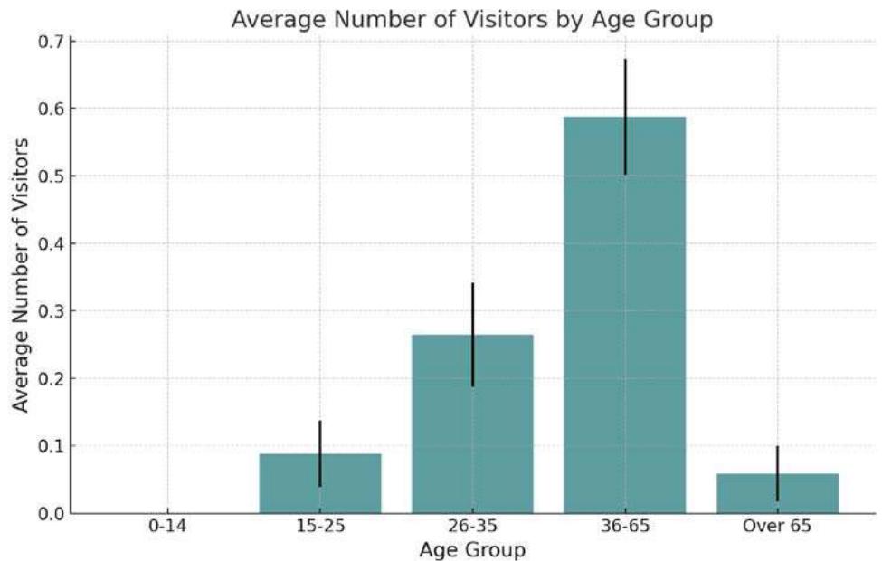 Figure 26: Bar chart visually illustrating trends in the number of visitors in relation to their age, especially highlighting the increase in the average number of visitors in the age group of 36 to 65 years.