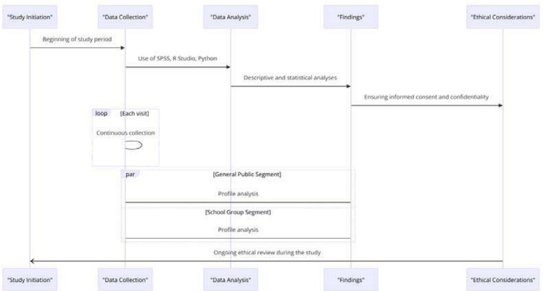 The study focused on two main groups: the general public and school groups, documenting their demographic characteristics and booking patterns. Data on the date of visit, type of group, origin of visitors, and their motivations were collected, using advanced quantitative methods (SPSS, R Studio, Python) to analyze and predict visitation trends. The research, covering from the end of summer to winter, offers a perspective on seasonal preferences, though it does not provide a complete annual picture.