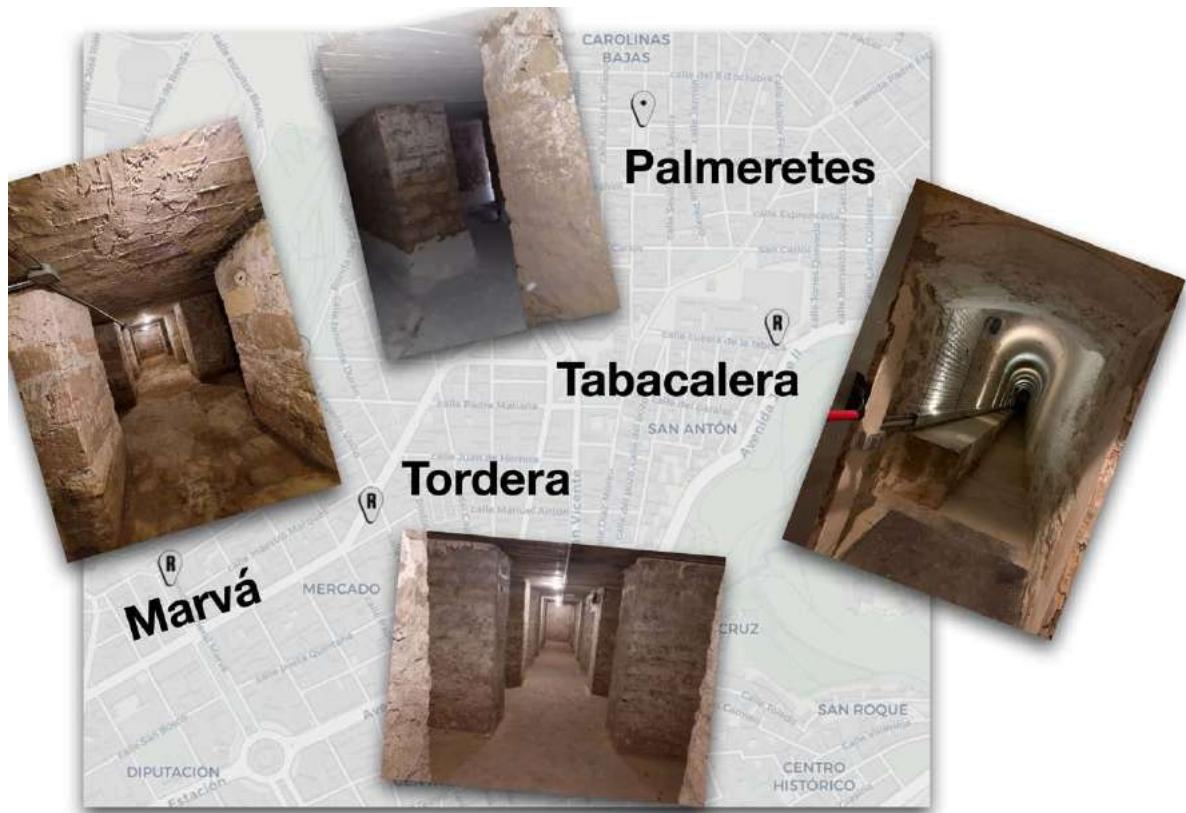 Figure 1: DUSI area of the city of Alicante with the Civil War air-raid shelters that have been restored in the project.