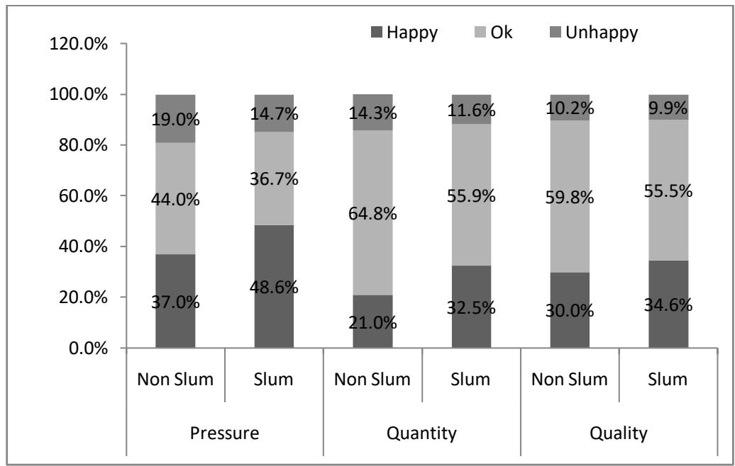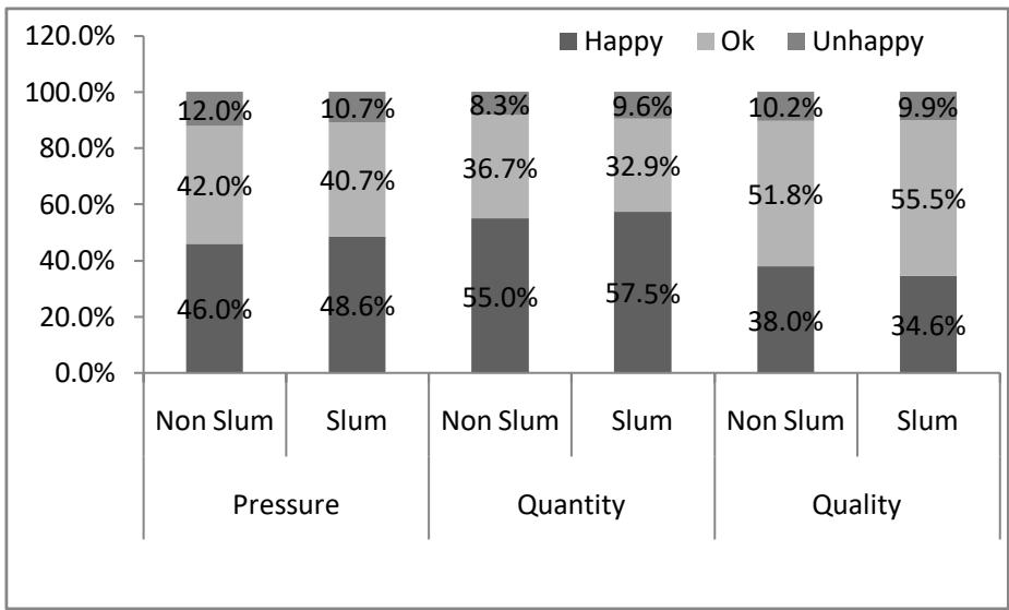IWS wards, there is differences between a slum and non-slum dwellers with regarding water pressure, quantity and quality of water (See fig 3a and 3b).