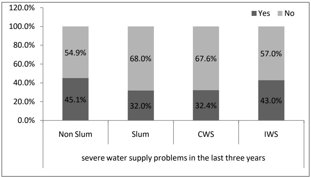 years as compared to nonslum, but households that comes come under IWS wards have been faced water shortages than the CWS (See fig 4).