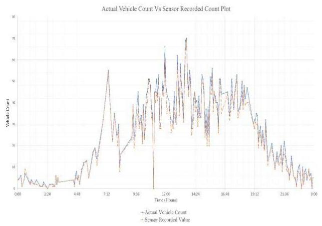 Figure 5: Actual Vehicle Count vs Sensor-Recorded Vehicle CountPlot