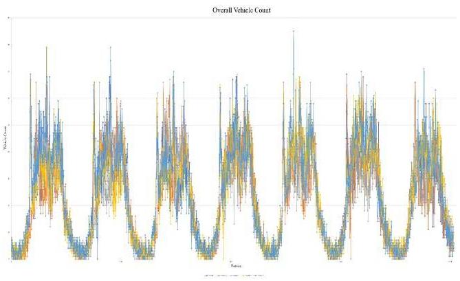 Obtained the accuracy results of the sensor was $89.86\%$. Figure 5 illustrates the behavioral differences between actual vehicle count and sensor-detected vehicle count. This emphasizes that sensor detected vehicle count is almost closer actual vehicle count. Similarly, this sensor accuracy plot is also helpful to understand the traffic behavior of a day, starting from 0.00hr to 23.59hr. Accordingly, it was understood that the traffic behavior of a day more takes normal distribution behavior, in which the higher values cluster in the middle of the range and the rest taper off symmetrically toward either extreme.