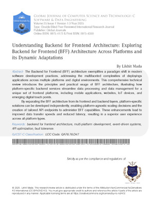 Likhit Mada. 2026. \u201cUnderstanding Backend for Frontend Architecture: Exploring Backend for Frontend (BFF) Architecture Across Platforms and its Dynamic Adaptations\u201d. Global Journal of Computer Science and Technology - C: Software & Data Engineering GJCST-C Volume 25 (GJCST Volume 25 Issue C1): .
