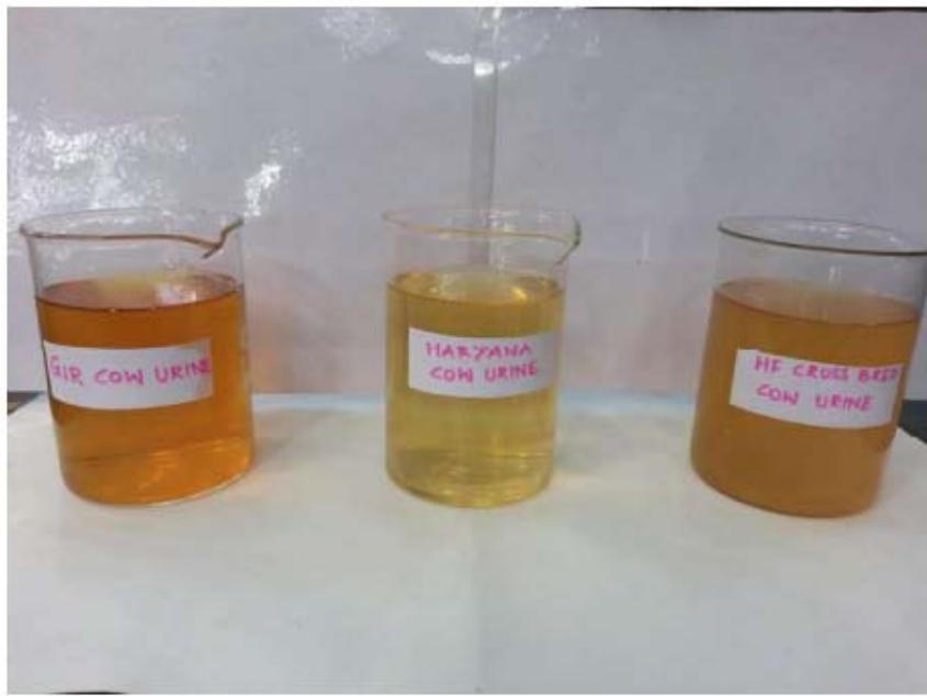 Fig. 4: Cow urine samples collected from Goshala of Sri Vittal Rukmini Samasthan