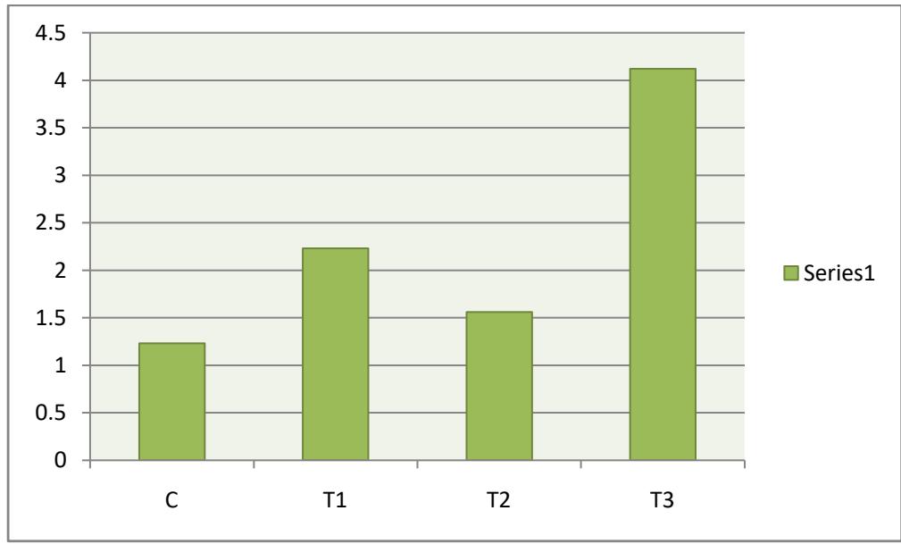 Feeding rate (1.77 mg/g/day), food absorbed (35.72 g), absorption rate (1.77 mg/g/day), absorption efficiency (69.04%), gross conversion efficiency (94.22%), and net conservation efficiency (93.93%) are some of the food usage metrics., which received Gir cow urine treatment, was greater in T1 (Table 2). The HF cow urine treated groups (T3) had a minimum performance of $65.65\%$, which is less than the control group.