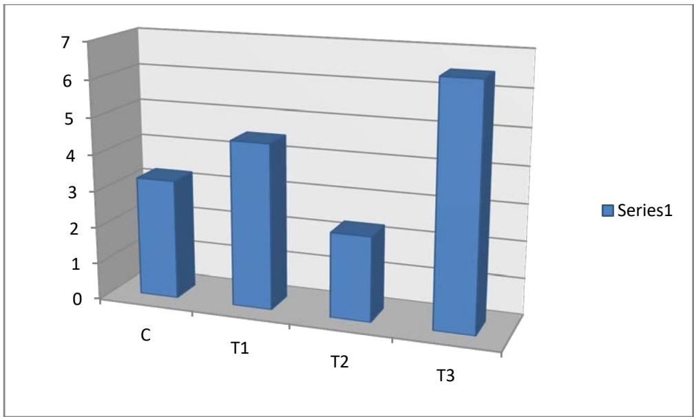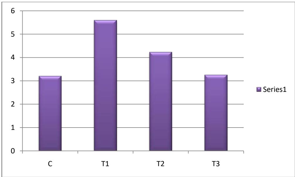The effects of several growth parameters, such as fish weight growth, growth rate, and $\%$ increase in body weight, are shown in Table 3. Control had the least growth augmentation of $0.212\mathrm{g}$. T1 had the highest weight rise, which was $0.498\mathrm{g}$. T1 had the highest weight percentage $(72.9\%)$ and control had the lowest $(33.5\%)$.