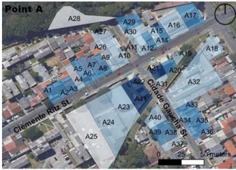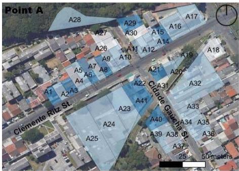 A total of 110 lots was established (points: A = 41, with only $4.9\%$ having an area greater than $1,000 \mathrm{~m}^2$;
