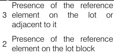 in the lot or adjacent to the lot</td></tr><tr><td>2</td><td>Presence of reference element