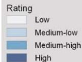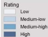 A weighted average based on the ratings obtained was chosen for comparative discussion of the points according to the following formula: