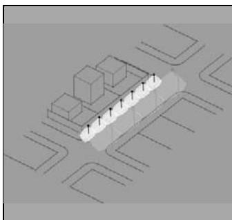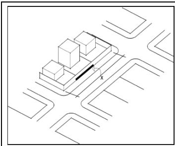 - Free pedestrian lane in front of the lot less than $2.0\mathrm{m}$ at some point on the block due to physical obstacles