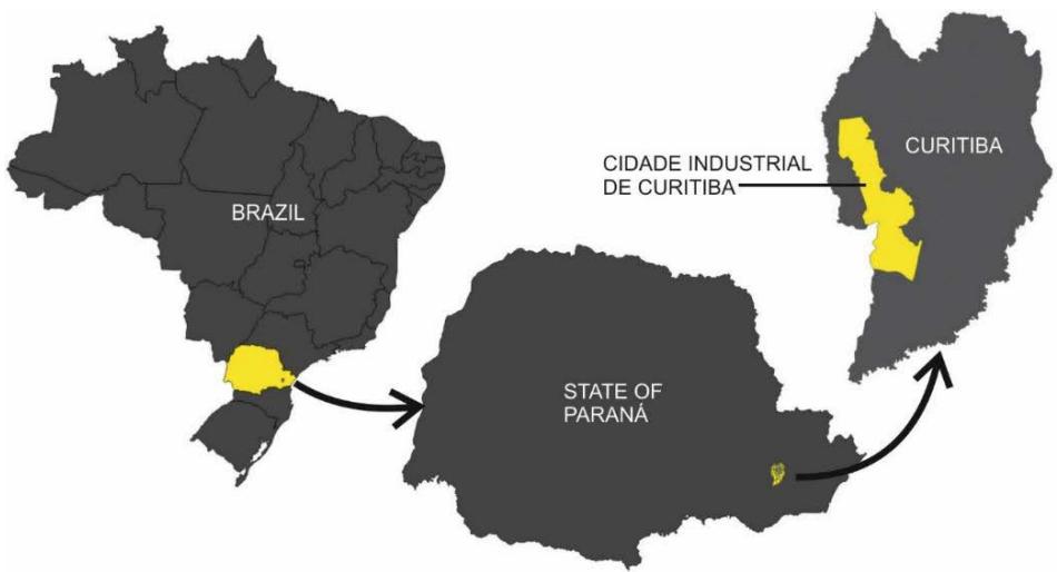 Sources: Based on IBGE (2023) and IPPUC (2023) Figure 1: Maps of the Geographic-Spatial Framework of the Study Area at National, State, and Municipal Levels