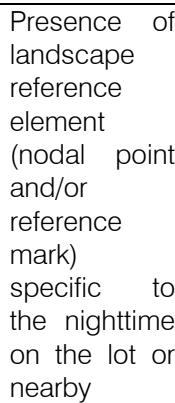 Presence of landscape reference element (nodal point and/or reference mark) in the lot or vicinity
