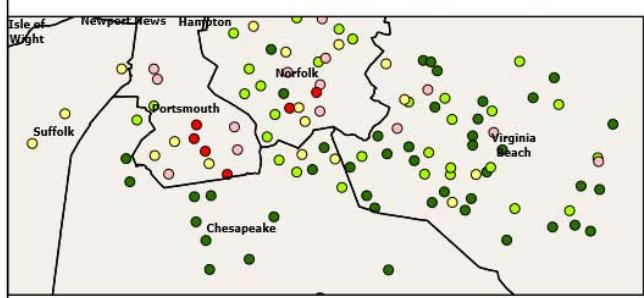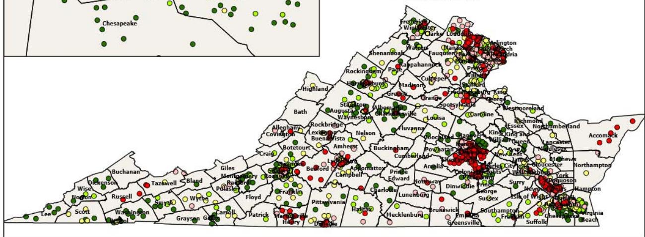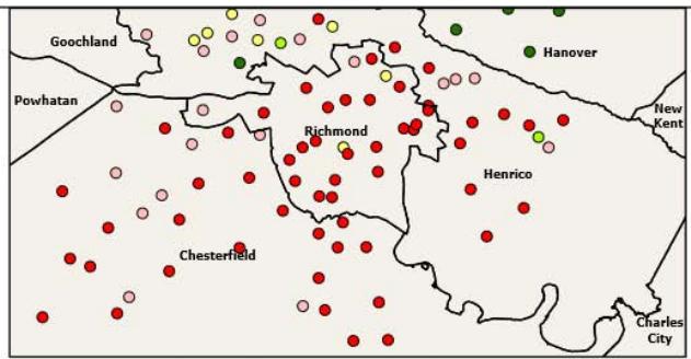 Secondly, we were unable to include data and indicators available at other geographic levels and subsequently map such datasets to our geographic level, because school attendance boundaries are constantly changing and redrawn. Erbsterin et al.(2013) argue that youth well-being in the United States should be measured at the school district level because school district boundaries "often reflect municipal boundaries... and therefore present a policy-relevant geography with respect to youth well-being." (p.268). However, Virginia has no centralized method of redrawing school boundaries and each school district is in charge of drawing its own school boundaries. Hence, we were unable to link geographic levels like census tract to school attendance boundaries.