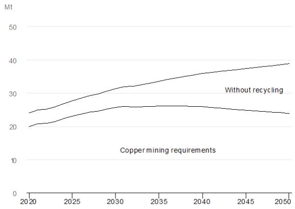 - Focus on the near term and the achievable, but buildtowardslonger-term for sustainable results. If decarbonization efforts are to succeed, the very success will inevitably hit supply constraints of raw materials and other supplies -- particularly essential minerals such as copper, lithium, nickel, cobalt and rare earths. In the case of copper, which is one of the most critical minerals driving the clean energy transition, especially for renewable energy technologies, global demand projected to grow by at least $50\%$ by 2050 under the International Energy Agency's Net Zero by 2050 Scenario. More broadly, finding sustainable and efficient sourcing of copper is essential for the energy transition and circular economies. This will require building efforts that