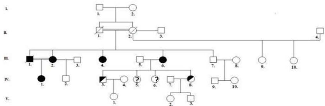 In the present study, a highly inbred family with five affected individuals of both genders with USH2C was identified: nine people were clinically examined: four women were affected, with three of them presenting progressive sensorineural hearing loss and retinitis pigmentosa; one, in addition, presented vestibular alterations evidenced by vertigo and gait impairment (Table 1), with which the diagnosis of USH2C was proposed. In addition, attention was paid to a first degree inbred union in which the parents and the daughter showed homozygosity for the ADGRV1 and USH2C gene mutation with USH2C. Directed exome sequencing study with an Usher syndrome panel rapidly showed a new pathogenic variant in the ADGRV1 gene, confirming not only the accurate diagnosis of the Usher Syndrome subtype, but also the number affected for a family in a small village of Colombia; a fact that surely as a result of geographic isolation, facilitated the intrafamily unions observed in the genealogy.